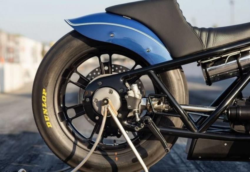 Мотоцикл получил цвет синий металлик с белыми полосами. Раму полностью изменили и убрали заднюю часть. Ее заменили цельнотреугольной конструкцией хардтейл, чтобы превратить круизер в драгстер. Передние и здание крылья изменили., что гармонизировать их с новой рамой. Детали из листового металла помогли сохранить классический силуэт R18.