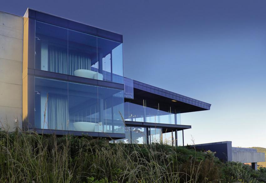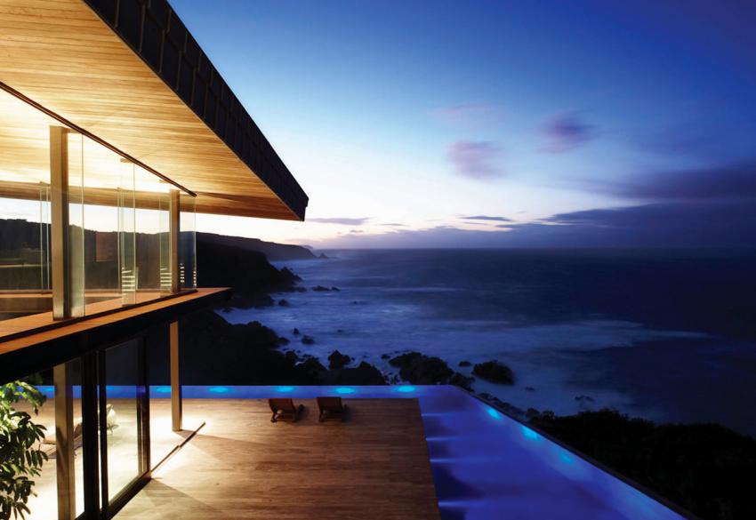 Великолепную виллу Cove 3, предназначенную для отдыха всей семьёй, представила дизайнерская студия Saota из ЮАР. Строение, расположенное на океанском побережье, идеально вписывается в особенности рельефа и имеет окрас, позволяющий ему гармонировать с окружающей средой. Вилла имеет открытую планировку, её комнаты очень просторны и светлы. Они обставлены современной мебелью, выполненной на заказ. Общая комната и спальня соединены изящной винтовой лестницей. Со стороны океана у виллы имеются открытая деревянная терраса, бассейн и лужайка, которая идеально подойдёт, например, для детских игр.