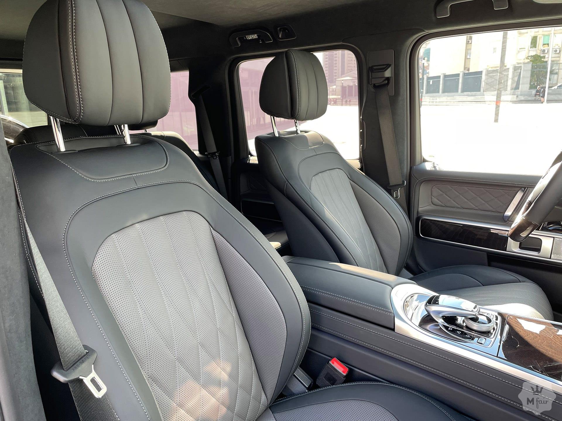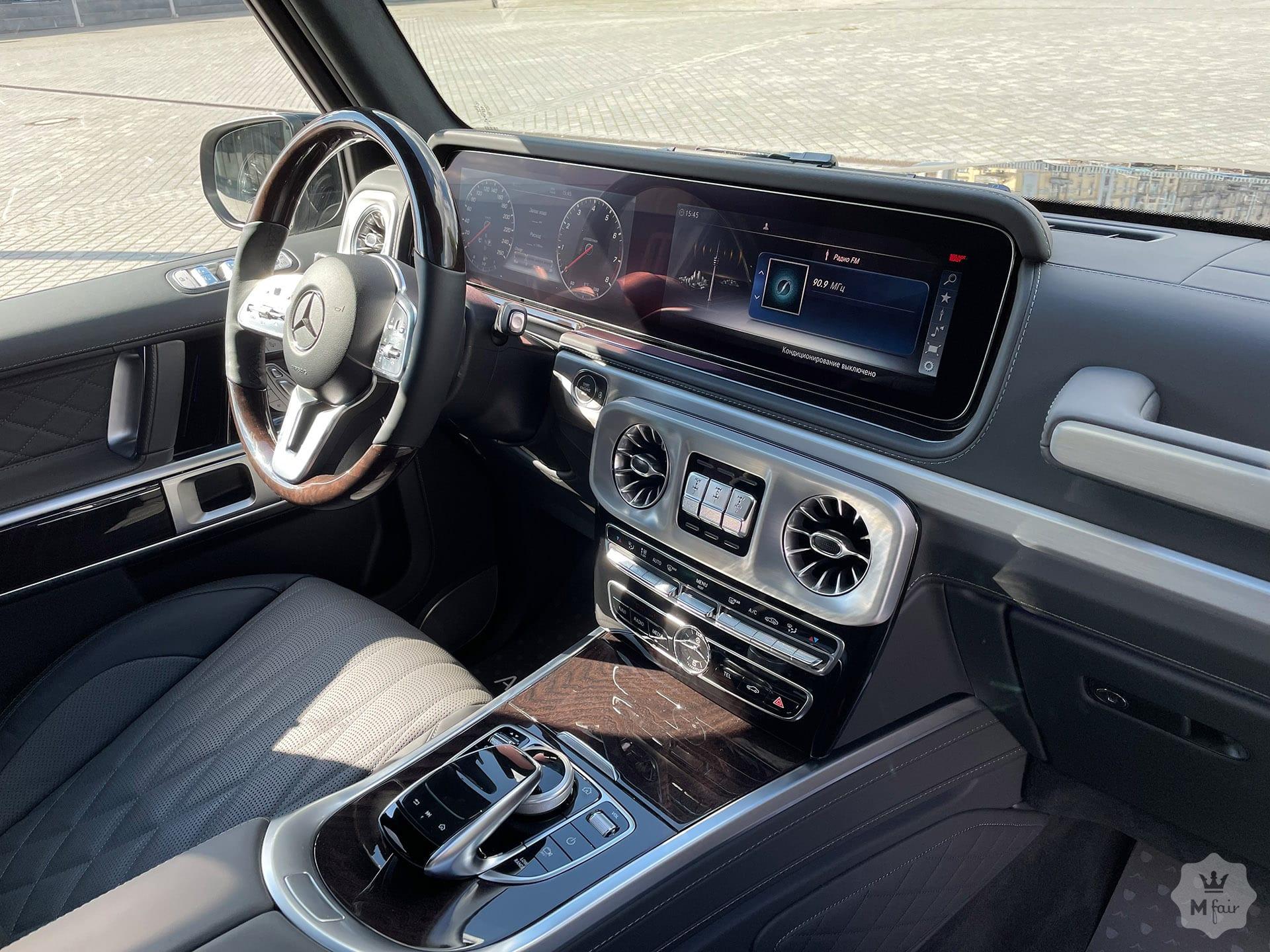 Интерьер «G‑ваген» производит самое приятное впечатление. Удобная посадка в креслах с боковой поддержкой, 2 больших дисплея на центральной консоли и вставки из дерева и алюминия на центральной консоли. По центру, на самом видном месте расположены кнопки принудительной блокировки дифференциалов. Под рукой, удобно расположена система управления мультимедиа и настройкой автомобиля, информация о котором выводится на дисплей. Камеры кругового обзора помогают не только парковаться в стесненных условиях, но и ориентироваться на пересеченной местности со сложным рельефом.