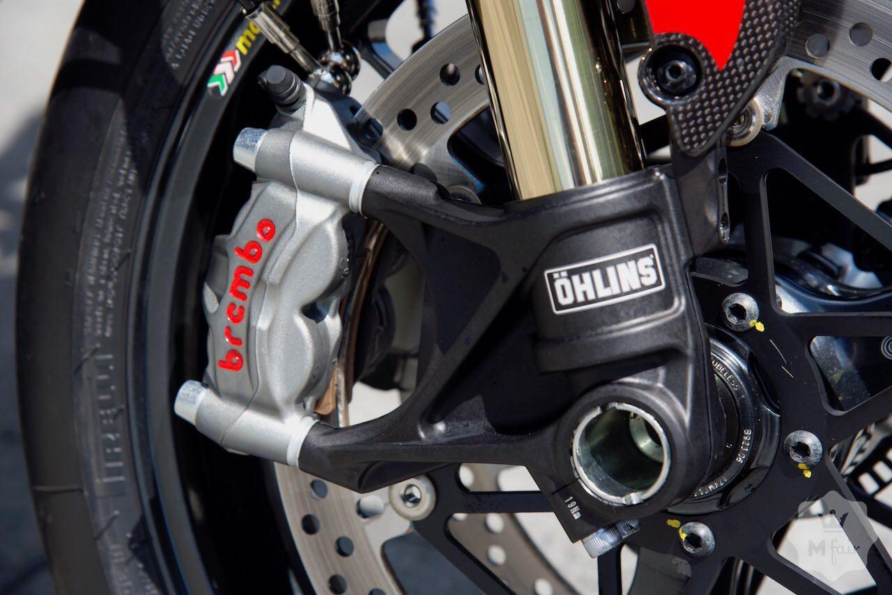 Байк приводится в движение Кроме того, Monster 1200 R обладает рамной конструкцией, позаимствованной у гоночных моделей. Она включает в себя фирменную решетчатую раму DUCATI , которая была смонтирована непосредственно к силовой установке байка.